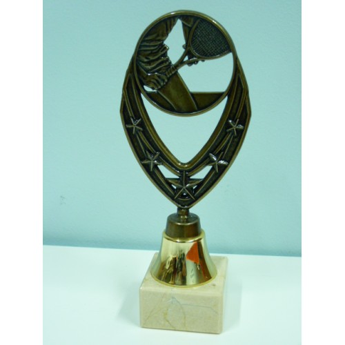 Troféu em metal - modalidade ténis. Base em mármore branco.